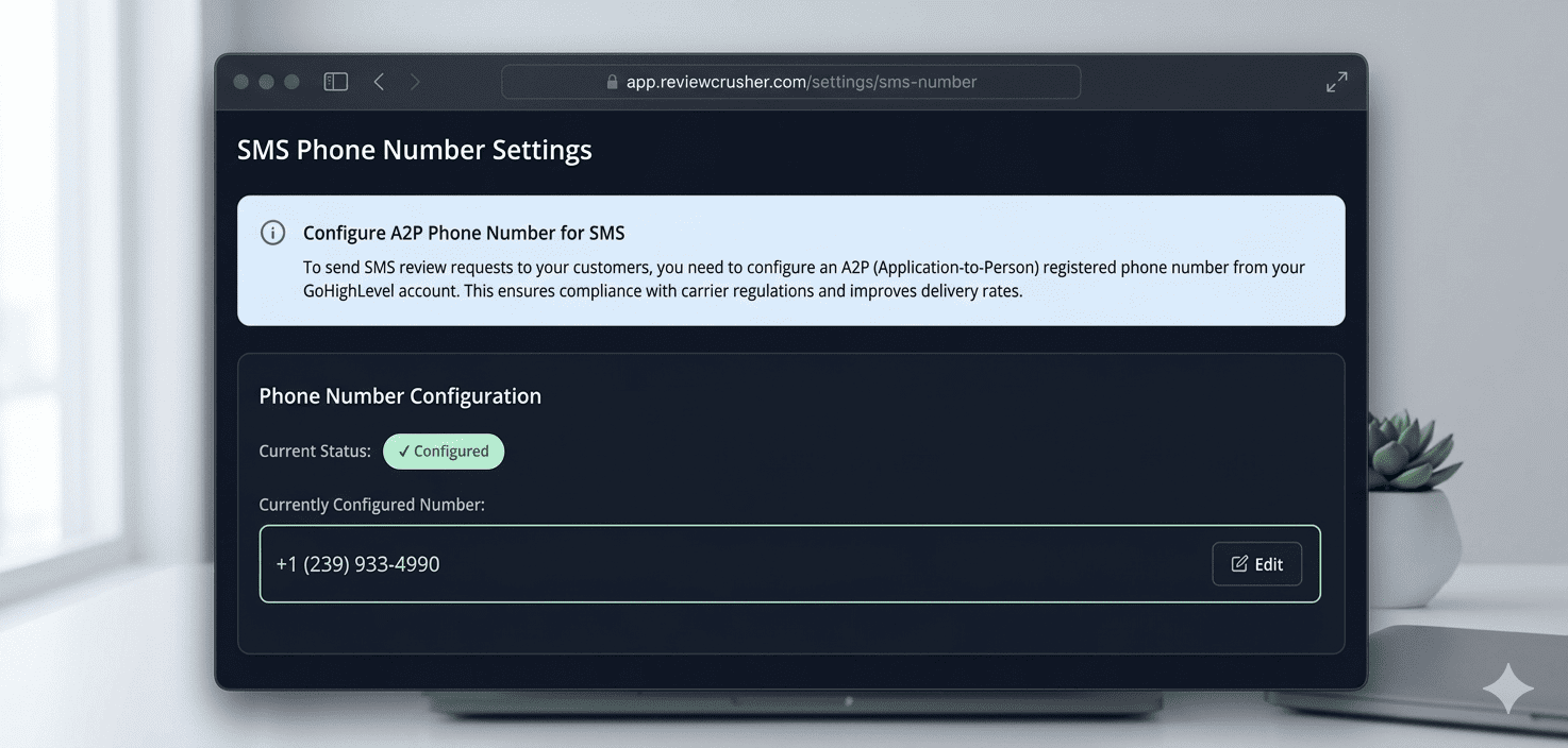 Learn how to register and manage your A2P phone number for compliant SMS review requests and messaging.